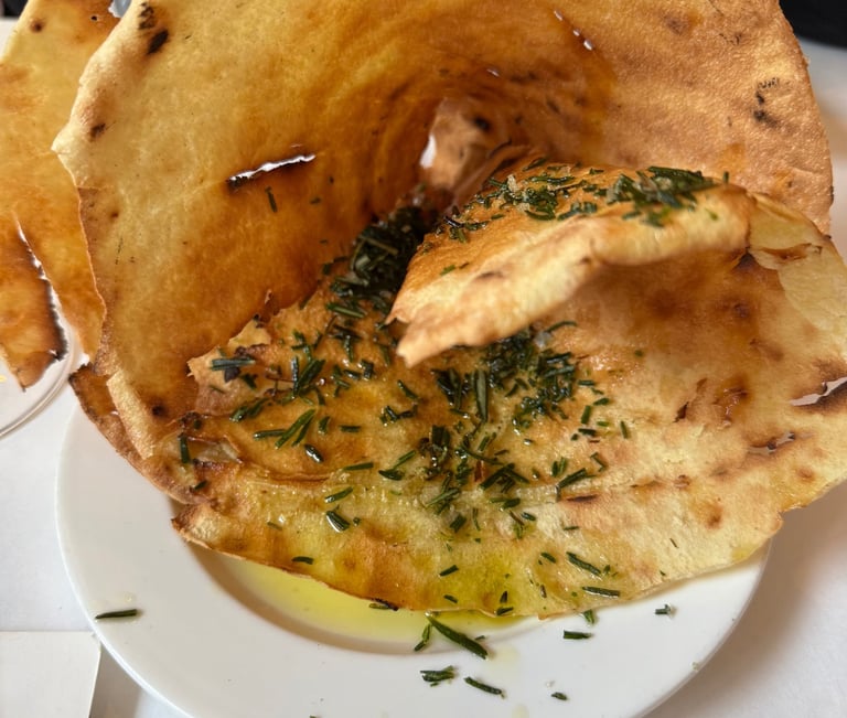 Complimentary Bread; Panisse; Ravioli; Lobster and Peas; Cherry Clafoutis