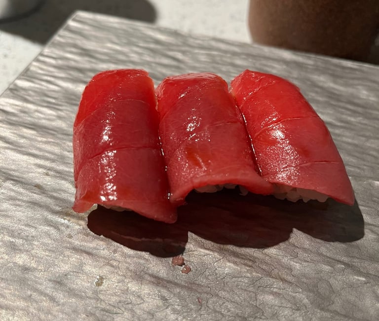Food: The nigiri here is solid - good quality fish with typical touches of things like yuzu and speciality salt. The set price comes with a small selection of unlimited sake, beer, or tea (hot or iced). Once the set is over you are told that you can now order unlimited extra pieces, to be selected from a short list of options (mine were lean tuna, fatty tuna, and Wagyu). You can order as much as you want, but you can only order once, and are asked to order your next set before you can finish your first. For example, before we could finish our first extra set of lean tuna we were being asked how many fatty tuna pieces we wanted. Add that to the sudden friendliness and over pours of the waitresses and you are basically set up to get tipsy, over order, and not finish. And guess what - if you don’t finish the extra pieces, you pay for them. This is even worse if you are at the tables rather than the counter - I saw one couple get all of their extra pieces at the same time (something like 50 pieces) and watched them struggle miserably to finish.